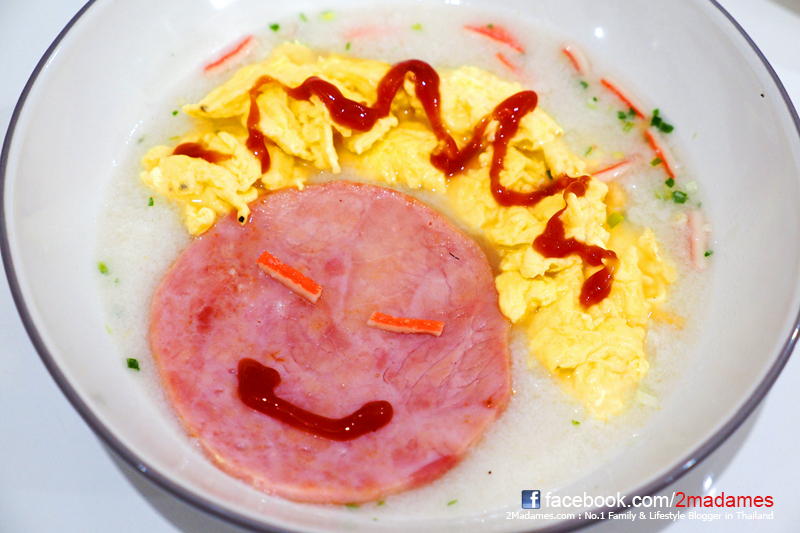ทอดหมูแฮมเพิ่มสักชิ้น จัดจานให้สวยก็จะได้เมนูโจ๊กเด็ดๆมัดใจเด็กๆแล้วล่ะค่ะ