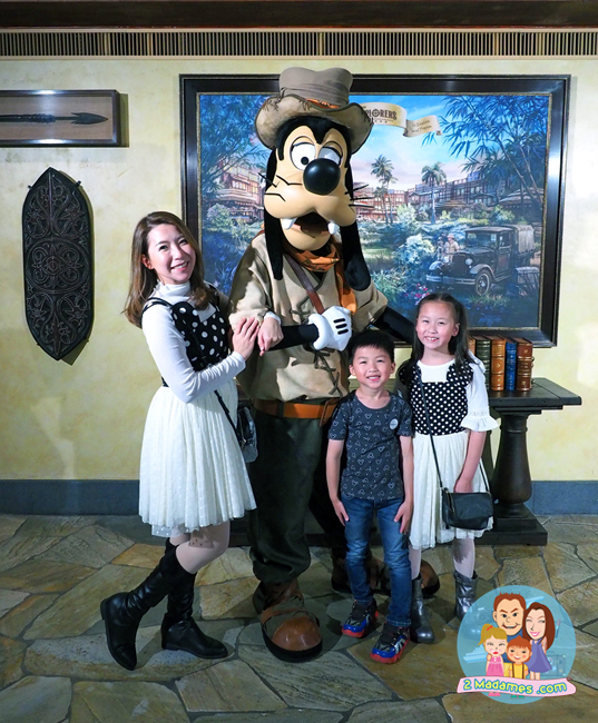 บริเวณล็อบบี้จะมี Goofy แต่งชุดนักผจญภัยมาคอยยืนถ่ายภาพกับแขกของโรงแรมด้วย