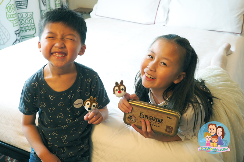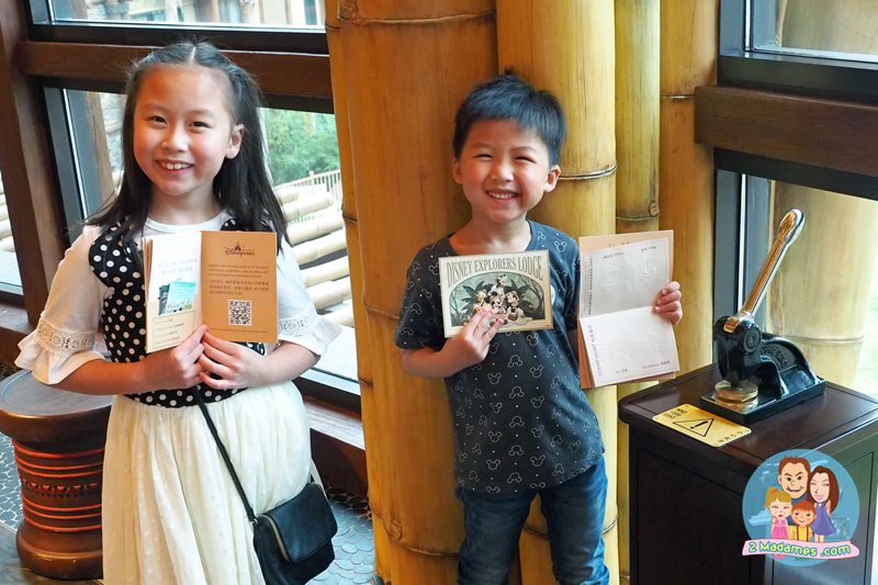 ที่ Disney Explorers Lodge จะแจกสมุดให้เด็กๆคนละเล่ม ซึ่งสามารถนำไปแสตมป์ตามจุดต่างๆของโรงแรม ถ้าสะสมได้ครบ นำไปแลกของรางวัลได้อีกด้วย สนุกกันใหญ่เลยงานนี้