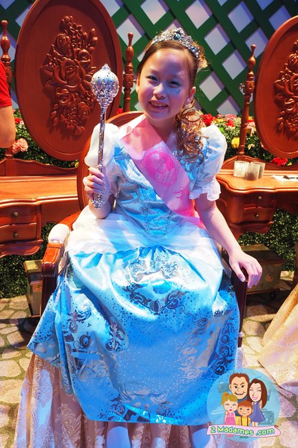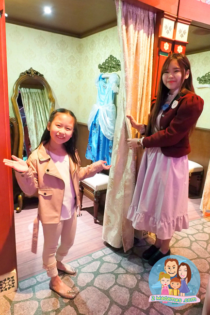 เริ่มเข้าไปจะมีพนักงานพาว่าที่เจ้าหญิงตัวน้อยไปเลือกชุดกันก่อน ชุดที่มีก็เกือบครบทุกองค์ของเจ้าหญิงตัวเด่นๆ ไม่ว่าจะเป็น เอลซ่า อันนา ออโรร่า เบลล์ ซินเดอเรลล่า ราพันเซล สโนวไวท์ จริงๆมีเยอะกว่านี้ ก็ให้น้องๆเลือกกันตามใจชอบเลย