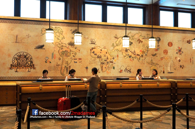 ล็อบบี้ของที่นี่เป็นถงเพดดานสูงครับ จะตกแต่งด้วย Theme นักผจญภัย นักสำรวจทั้งโรงแรมเลย แถมที่สนุกมาก คือ จะมีสัญลักษณ์มิ้กกี้ซ่อนไว้ตามพื้น ผนัง เฟอร์นิเจอร์ให้เด็กๆออกตามหาเล่นด้วย