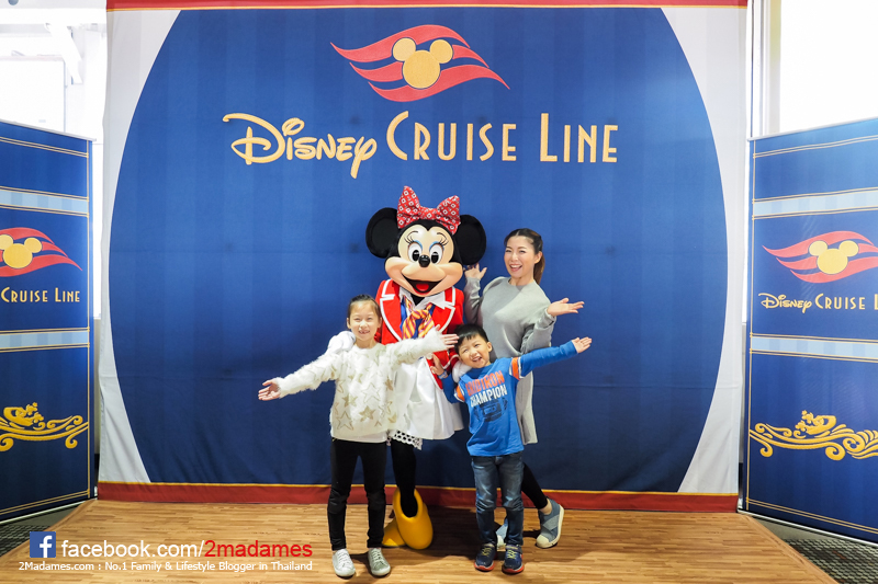 รัดสายข้อมือให้น้องเกรซน้องกายเสร็จ ก็แวะถ่ายภาพกับมินนี่ก่อนขึ้นเรือ Disney Magic กัน
