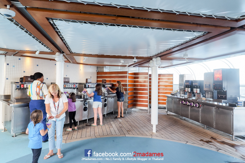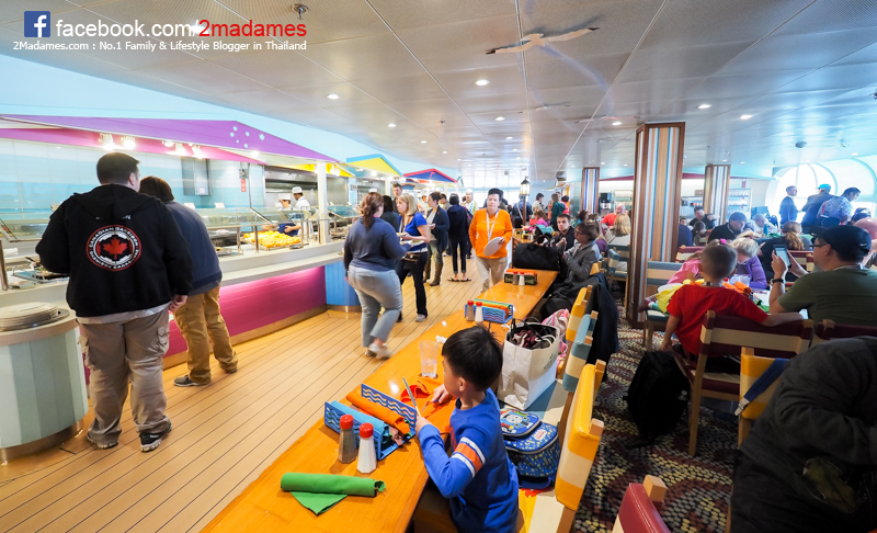 หลังจากช่วงเวลาที่ห้องอาหารหลักปิดให้บริการแล้ว ใครทานข้าวตรงมื้อไม่ทัน ก็ไม่ต้องกลัวอดนะ เพราะบนเรือยังมีบริการอาหารที่ Pete’s Boiler Bites ที่เปิดตั้งแต่ช่วงสายๆถึงเย็นเลย อาหารที่ให้บริการก็จะเป็นอาหารที่ทานง่ายๆพวกไก่ทอด ฮอตดอก เบอร์เกอร์ และมันฝรั่งทอด
