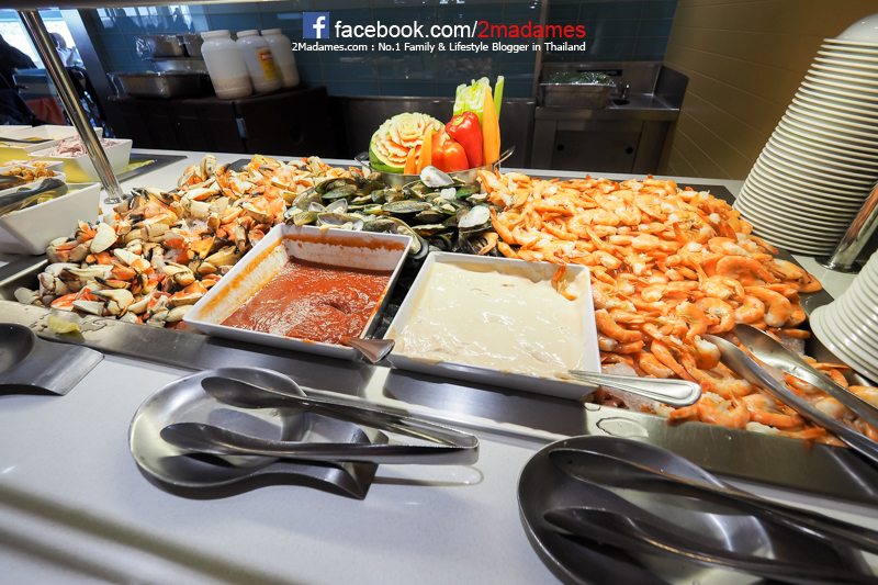 เสน่ห์ของห้องอาหาร Cabanas มื้อกลางวัน คือมีซีฟู้ดส์ให้ทานแบบไม่อั้น ทั้งปูที่มีแต่ก้าม ทานง่ายสะดวกมาก แถมเนื้อหวานและแน่นมาก มีหอยให้กิน มีกุ้งด้วย ทั้งหมดคือสด และดีงามมาก นี่เป็นเหตุผลหลักที่ทำให้เราเลือกทานที่นี่ทุกมื้อเที่ยงเลย เสียดายอย่างเดียวที่เราพกน้ำจิ้มซีฟู้ดส์ขึ้นเรือมาด้วยไม่ได้ ถ้ามีน้ำจิ้มแซ่บๆคงจะเด็ดกว่านี้แน่นอน