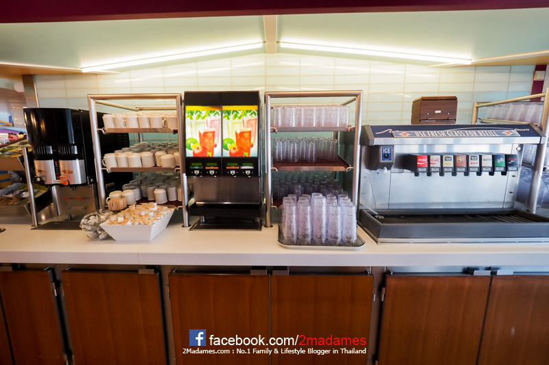 ส่วนบาร์เครื่องดื่มบริเวณชั้น 9 ตรงนี้เรียกว่าเปิดตลอด 24 ชั่งโมงกันเลย ครอบครัวที่มีเด็กเล็กๆต้องดื่มนมก็มากดนมสดตรงนี้ได้เลย มีช็อคโกแลตร้อนด้วย ส่วนน้ำอื่นๆก็เหมือนในห้องอาหารที่สีน้ำอีดลม ชา และกาแฟ