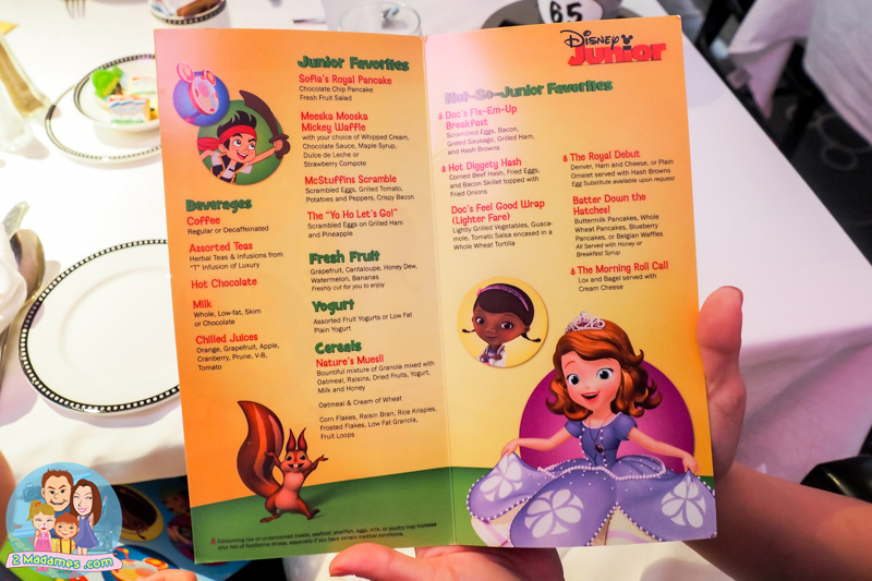 นอกจากมื้อเย็นน่ารักๆแล้ว ถ้าใครจองเที่ยวเรือเรียบร้อย แนะนำให้รีบโหลด Application แล้วทำการจองอาหารเช้ามื้อสุดพิเศษที่จะทานอาหารเช้าร่วมกันกับตัวการ์ตูนคาร์แร็กเตอร์ต่างๆฟรี ไม่มีค่าใช้จ่าย ที่ต้องรีบเพราะที่นั่งมีจำกัดมากๆ พวกเราเกือบพลาดจองไม่ทันด้วย อาหารที่เสิร์ฟก็เลือกตามเมนูนี้