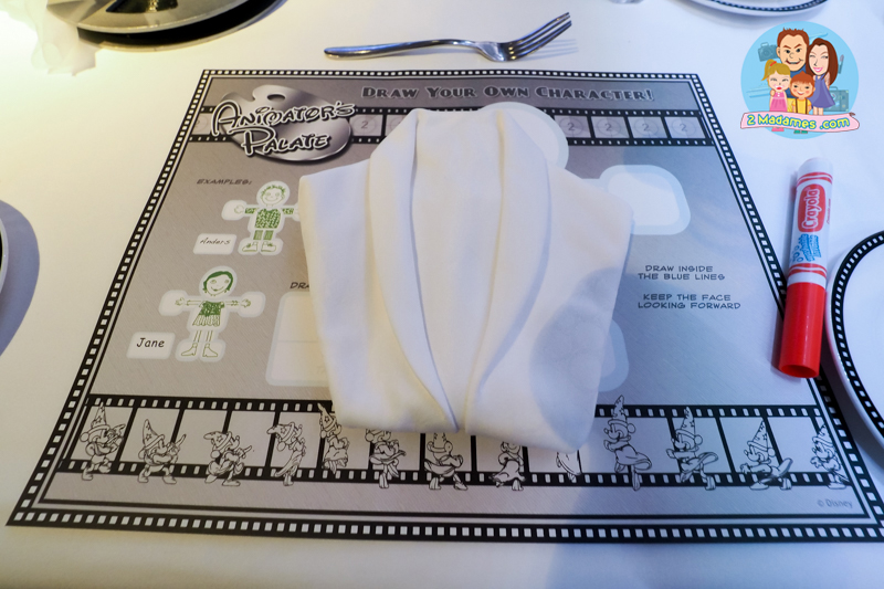 ห้องอาหารหลักสำหรับมื้อเย็นห้องที่ 2 คือ Animator’s Palate เป็นห้องอาหารที่เน้นการตกแต่งด้วยลายเส้นการตูน เป็นห้องอาหารที่พวกเราชอบมากที่สุด เพราะระหว่างการทานอาหารจะมีกิจกรรมให้เรามีส่วนร่วมตลอดเลย