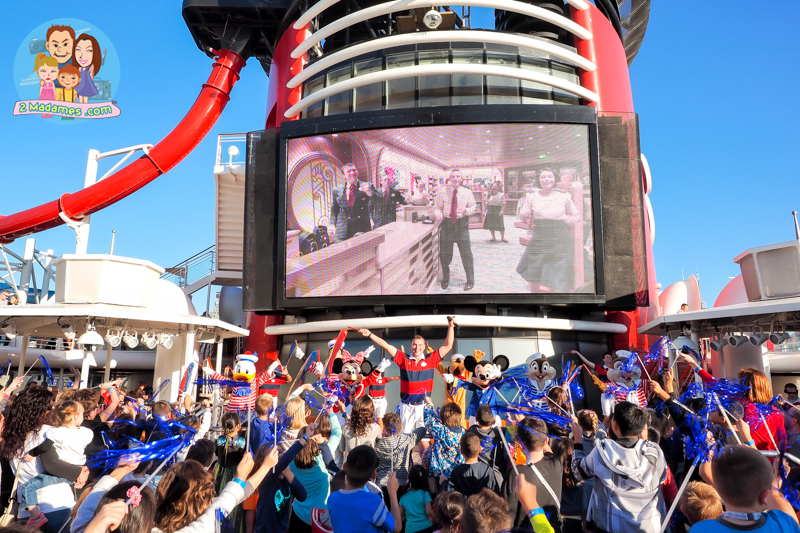 วันที่ออกเรือจะมี Sail Away Party บริเวณดาดฟ้าเรือ จะมีตัวการ์ตูนพวก Mickey Mouse พร้อมฝองเพื่อนมาแดนซ์กันกระจายเลย