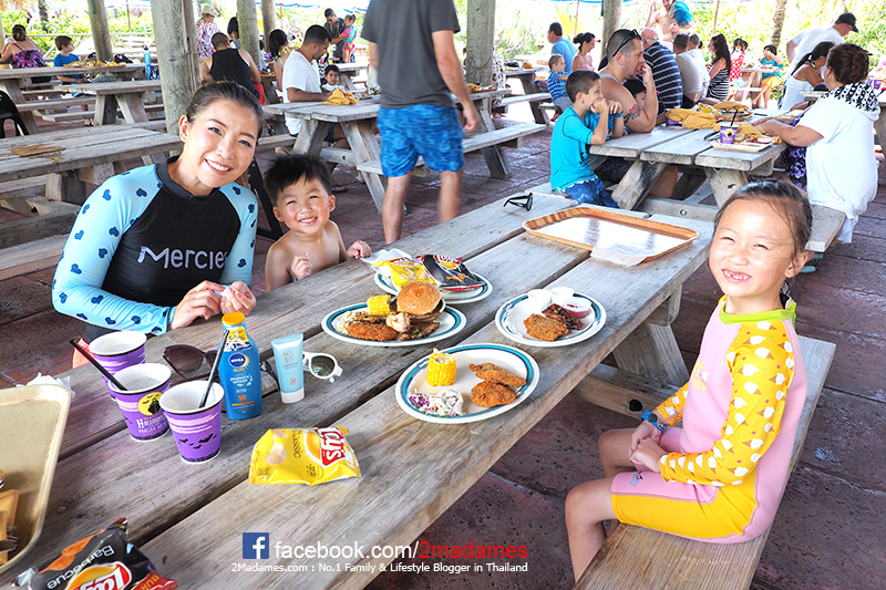 อาหารทานเล่นพวกนี้เป็นแบบบริการตนเอง สั่ง รอรับ แล้วก็หาโต๊ะนั่ง ถ้าเล็งทำเลดีๆไว้ได้ก็นั่งทานไปดูฉายหนังการ์ตูนกลางแปลงที่สระว่ายน้ำไปด้วยสบายๆจ้ะ ทานเสร็จมีบริกรคอยเดินเก็บถาดอาหารและทำความสะอาดโต๊ะให้ตลอด
