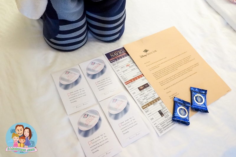 พิเศษที่คืนสุดท้ายจะมีซองสำหรับใส่ทิปพิเศษให้กับบริกรที่คอยบริการเราตลอด 8 วัน ได้แก่ บริกรเสิร์ฟ, ผู้ช่วยบริกรเสิร์ฟ, หัวหน้าพนักงานเสิร์ฟที่ห้องอาหาร (ตามไปเสิร์ฟเราที่โต๊ะทุกวันแม้จะเปลี่ยนห้องอาหาร) และพนักงานทำความสะอาดห้อง แต่จริงๆแล้ว ทางเรือจะหักจากเราไปโดยอัตโนมัติ 4 คน 396 USD ไปในบัตรเครดิตหลังจากลงจากเรือเลย (ค่าทิปจะคำนวณจากจำนวนวันและจำนวนแขกในห้องนะครับ)