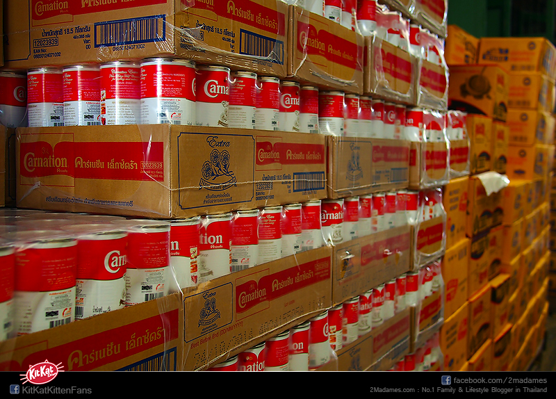 ด้านข้างของซอย ฝั่วขวาจะเป็นร้านขายส่ง นมคาร์เนชั่นแบบกระป๋องที่แพคเอาไว้ จะถูกวางเรียงรายกันแบบนี้เลยค่ะ