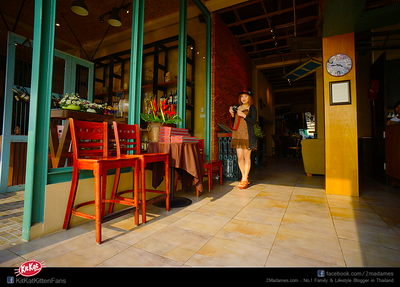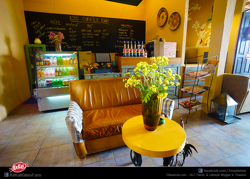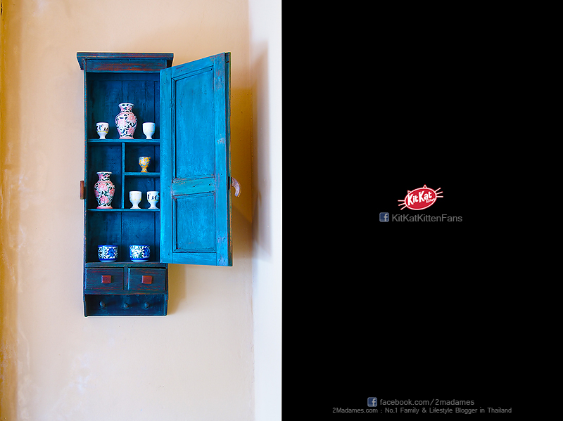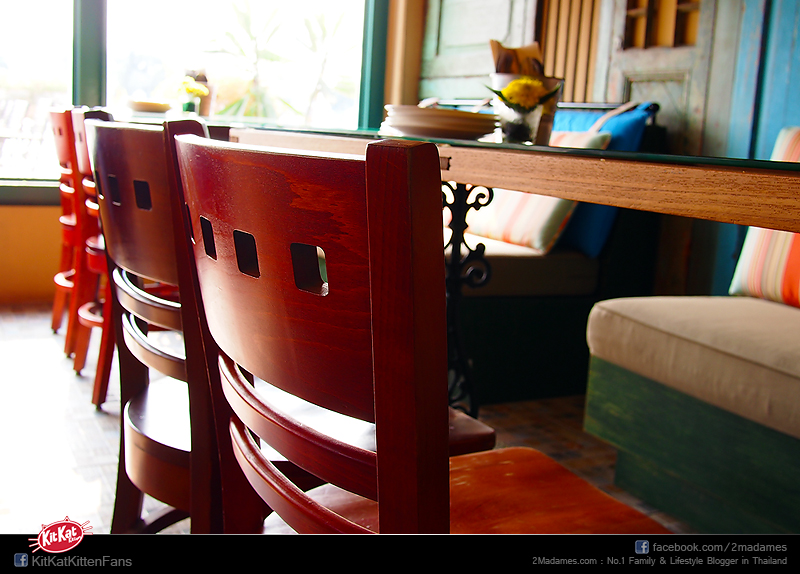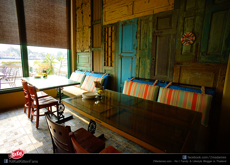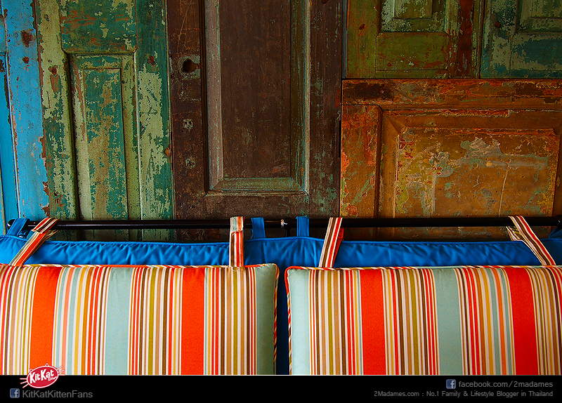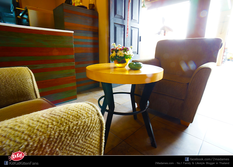 การตกแต่งภายในร้านเป็นแบบนี้ค่ะ กำแพงของทางร้านจะใช้หน้าต่างหรือประตูเก่าๆ โดยโทนสีฟ้า เหลืองและส้มค่ะ