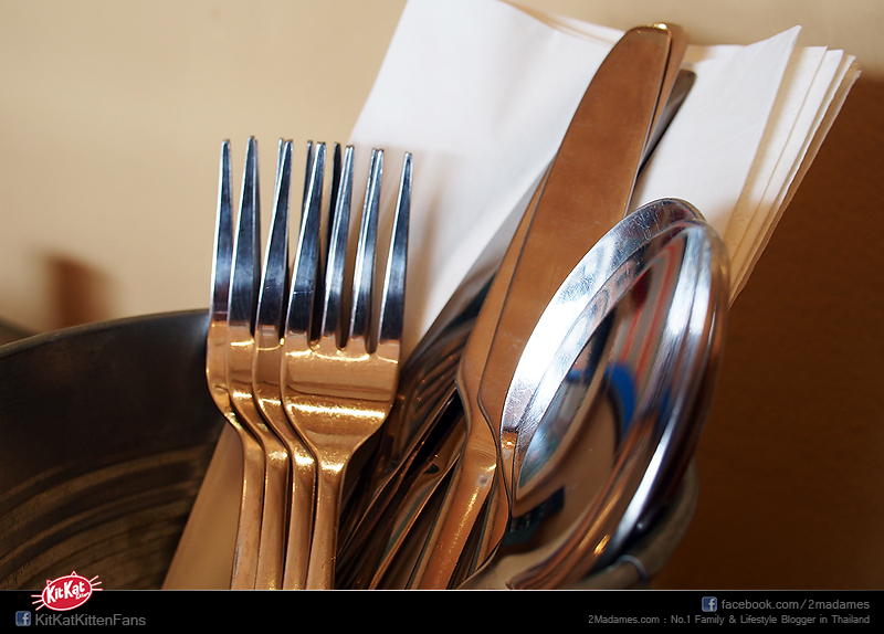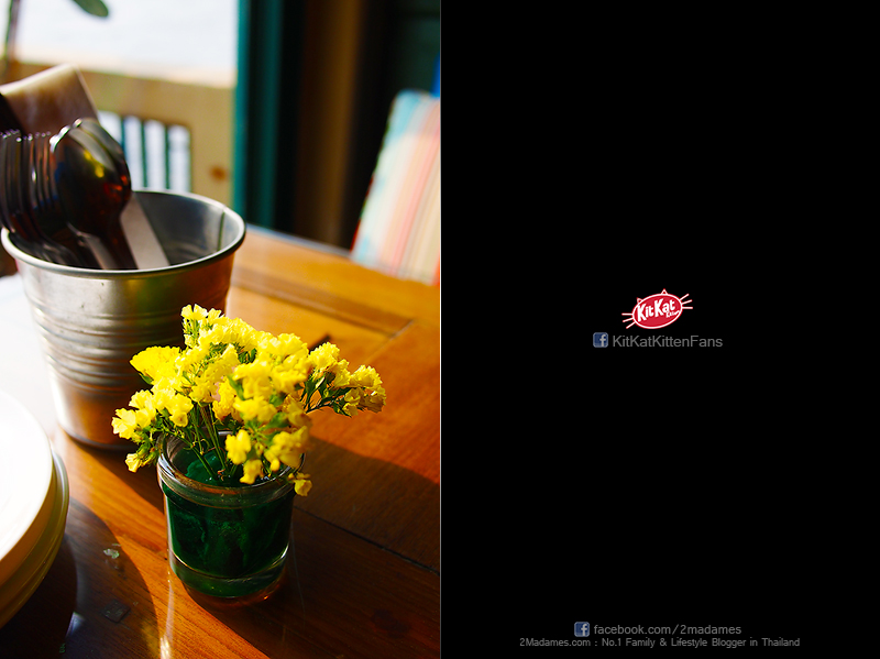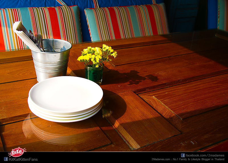 พอกลับเข้ามา แดดเริ่มจางลงบ้างเลยขอย้ายโต๊ะมาแถวกลางค่ะ เหมียวๆชอบการจัดโต๊ะ ที่มีจาน ช้อน ซ้อม มีด และกระดาษทิสชู โดยจัดไว้เป็นสัดส่วนคู่กับดอกไม้บนโต๊ะ ซึ่งเป็น set up บนโต๊ะแบบง่ายๆ แต่เก๋ ให้ความรู้สึกเหมือนทานที่บ้านค่ะ