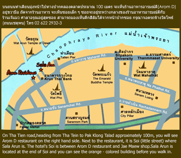 ทางหน้าปากซอยร้านอาหารอารมณ์ดี บริเวณด้านข้างจะมีป้ายของ Sala Rattanakosin ให้เดินเข้าไปในซอยนี้ได้เลยค่ะ ซึ่ง Sala Rattanakosin ก็มีห้องพักและร้านอาหารของเค้าเองเหมือนกัน และติดริมน้ำเช่นกันค่ะ