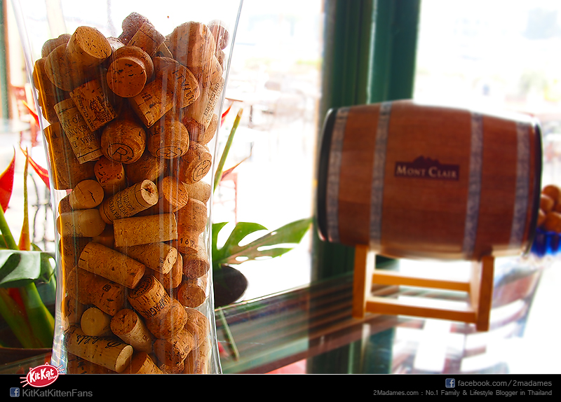 จุกคอร์กไวน์ที่เปิดแล้วถูกนำมาใส่โหลใส่เพื่อวางตกแต่งในร้าน คู่กับถังไวน์ ให้อารมาณ์อยากจะมึนเมามากๆเลยค่ะ