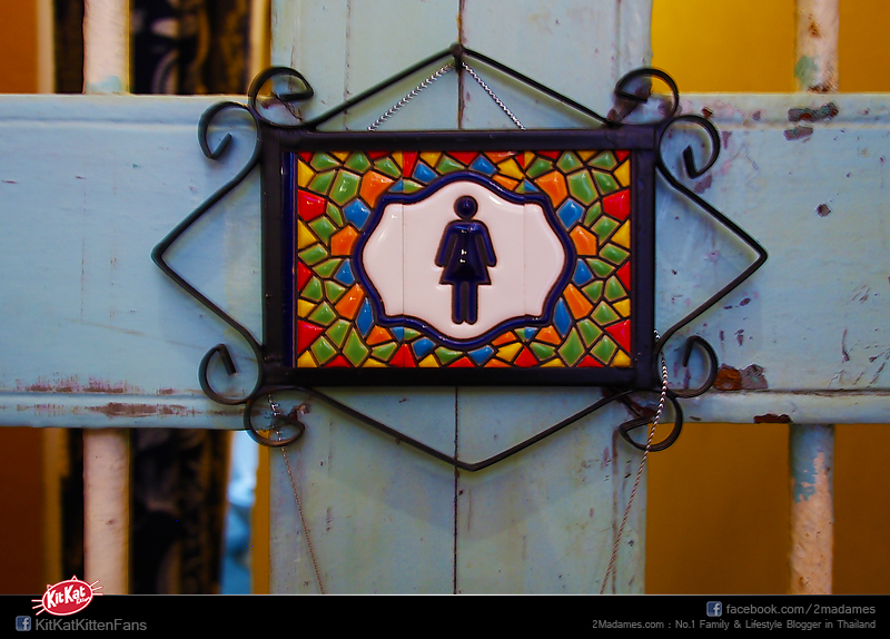 ทางเข้าห้องน้ำจะมีป้ายห้องน้ำทำจากกระเบื้องเก๋ๆค่ะ