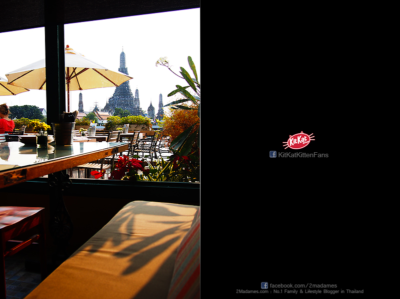 ที่นั่งอีกส่วนบริเวณโซน Outdoor จะมีโซฟาที่หันหน้าไปทางแม่น้ำเจ้าพระยา ให้นั่งจิบเครื่องดื่มชิลๆ ชมวิววัดอรุณฯ ค่ะ