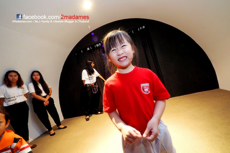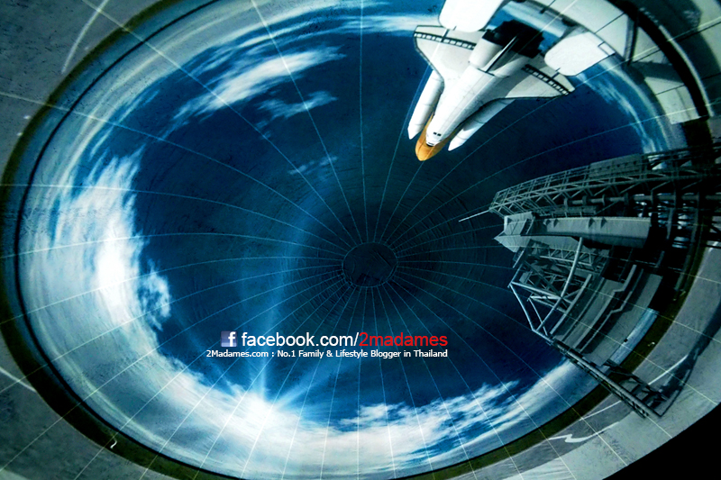 เข้าไปด้านใน จอภาพจะอยู่ที่ด้านบนเต็มพื้นที่เพดาน จอโค้งๆทำให้ภาพมีมิติ โดยจะมี Bean bag ให้เรานั่งสบายๆ ใครจะนอนแหงนดูจอภาพก็ได้นะ สบายจริงๆ