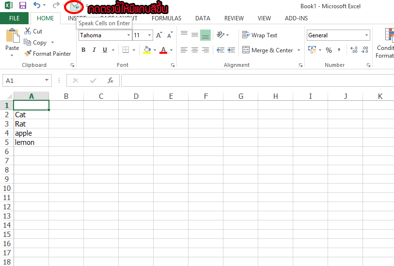 ตอนนี้เราได้เพิ่มแถบข้อมูลสำหรับการออกเสียงเป็นภาษาอังกฤษของ Excel แล้ว ก็แค่กดให้เครื่องมือทำงานครับ