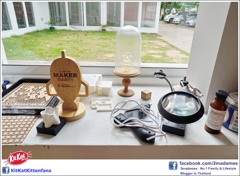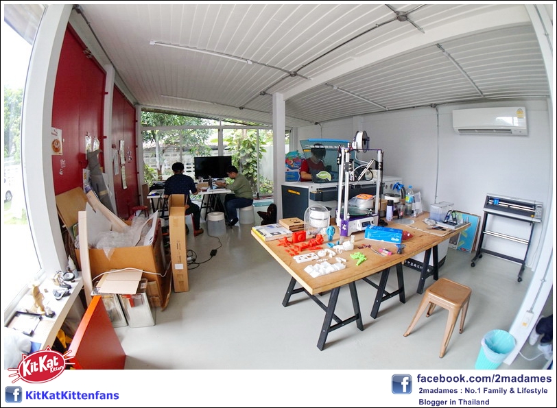 มาชมในส่วนของ FabLab กันค่ะ ซึ่งมีคนมานั่งทำงานกันอยู่บ้าง ในห้องนี้จะมีเครื่องต่างๆ เช่น 3D-Scanner Laser 3D-cutters และ3D-Printer และอุปกรณ์อื่นๆในการสร้างผลงาน หรือผลิตภัณฑ์
