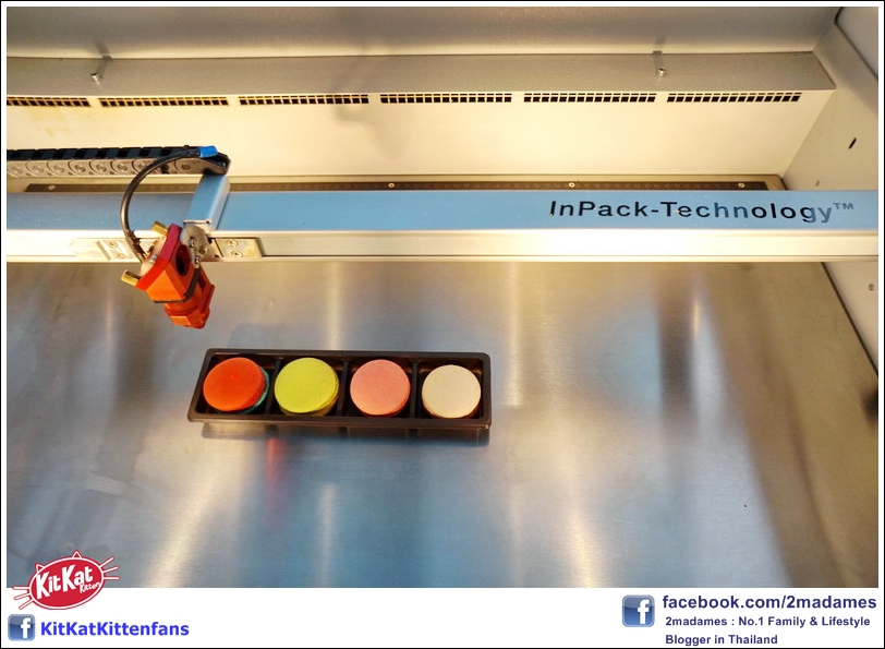 เรียบร้อยแล้วก็นำมาการองมาวางในเครื่องนี้ได้เลยค่ะ ด้านข้างจะมีปุ่มบังคับให้เลื่อนหัวเข็มมาที่กึ่งกลางของมาการองที่เราต้องการจะสลักลายลงไปทีละชิ้นค่ะ