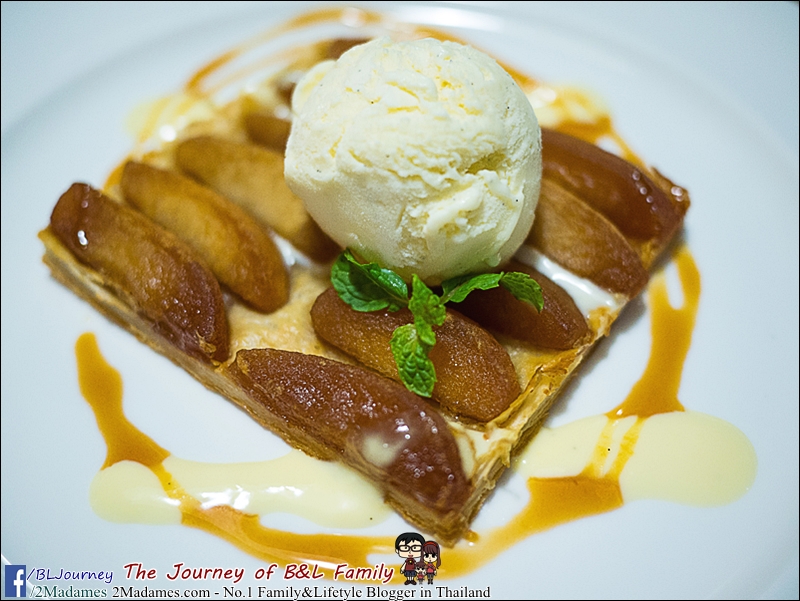 ตบท้ายด้วยของหวาน Apple Rustic Tart พายแอปเปิ้ลอบกรอบ เสิร์ฟพร้อมกับไอศครีมวนิลา เข้ากันอย่างลงตัว อร่อยเด็ดเลยครับ