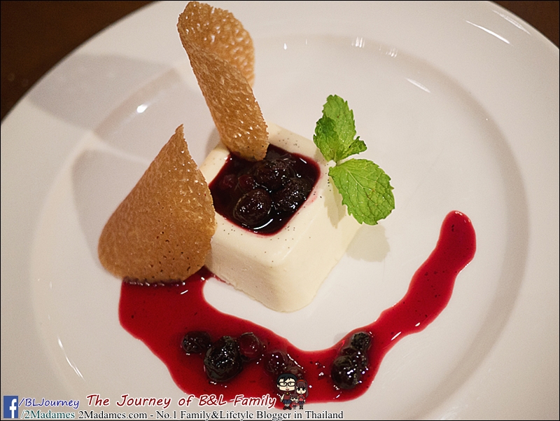 ปิดท้ายด้วย Vanilla Bean Panna Cotta ขนมหวานยอดนิยมของอิตาลี เสิร์ฟพร้อม Mixed Berry Compote และ Honey Tuile
