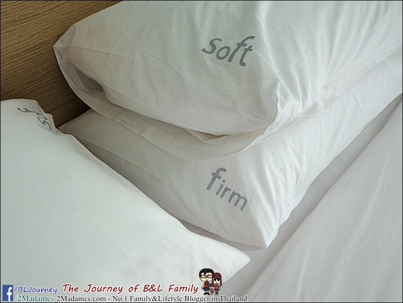 สำหรับหมอนบนเตียง จะมีวางไว้สองแบบนะครับ Soft กับ Firm แล้วแต่ความชอบ