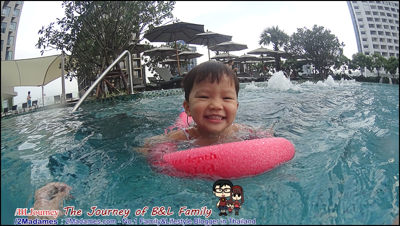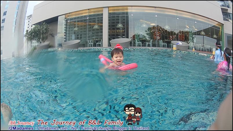 ระหว่างรอหม่าม้าสปา เบลล่าขอเล่นน้ำอีกรอบ เลยพาไป สระที่ Executive Tower ครับ ชั้น 4 เดินผ่านไปผ่านมาหลายรอบแล้ว ขอสักหน่อย