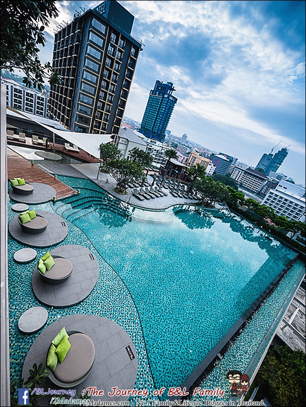 จากชั้น 4 เดินลงบันไดไปนิดนึงก็จะเจออีกสระนึงครับ เป็น Infinity Edge Pool ครับ ว่ายไปชมวิวสวยๆของหาดพัทยากันได้เลย