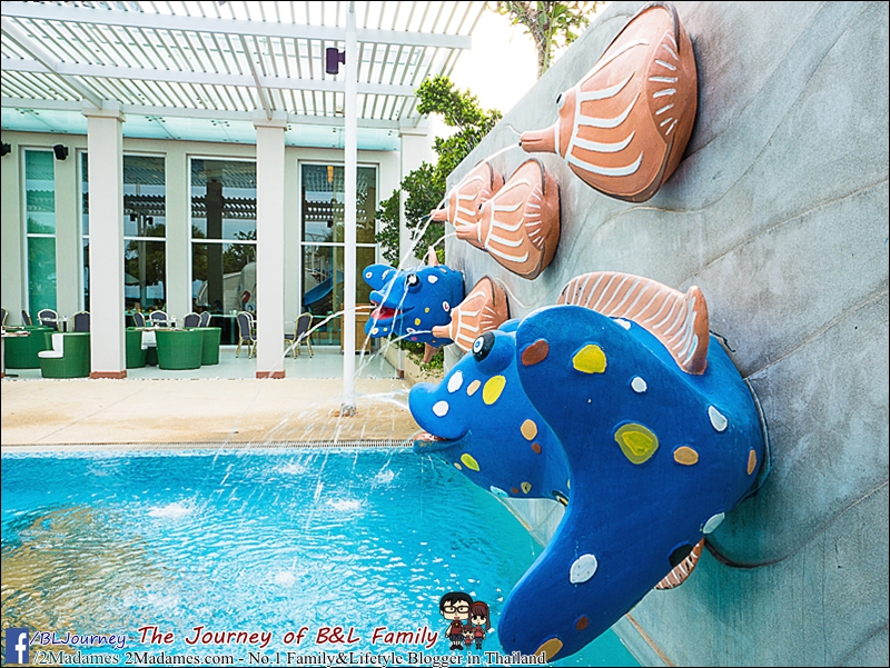สระว่ายน้ำเด็กออกแบบได้น่ารัก สีสันสดใส มีลายปลา ปลาดาว และสัตว์ต่างๆ ถูกใจบรรดาเด็กๆทั้งหลายแน่นอนครับ เบลล่าเห็นครั้งแรก บอกโอ้โห