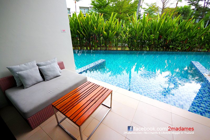ระเบียงห้องติดสระว่ายน้ำ จะนั่งเล่นหรือลงเล่นน้ำก็สะดวกเลย