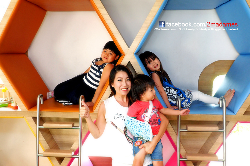 ใครเล่นจนเหนื่อยก็ไปนั่งพักที่ชั้นรังผึ้งที่บันไดปีนขึ้นไปนั่งเล่นได้
