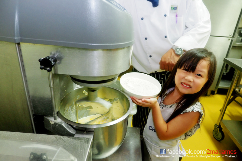 น้องเกรซชอบ Class ทำอาหารแบบนี้มาก อีกวันเลยขอต่อด้วย Class ทำคุ้กกี้ เริ่มด้วยนำส่วนผสมต่างๆเช่น แป้ง น้ำตาล เนย ไข่ไก่ ลงไปผสมในเครื่องตีไข่