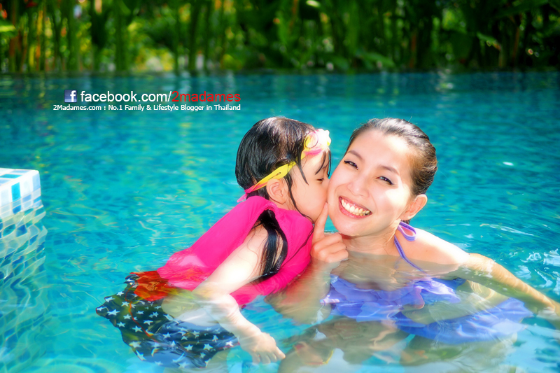 แม่ลูกเริ่มจากลงเล่นน้ำที่ห้องกันก่อน ส่วนน้องกายทริปนี้เข้าเผือกอยู่อดเล่นน้ำเลย