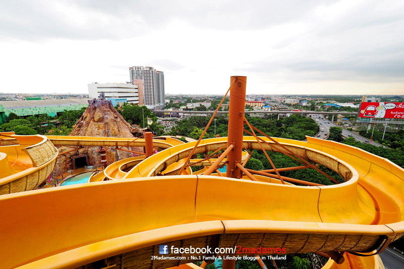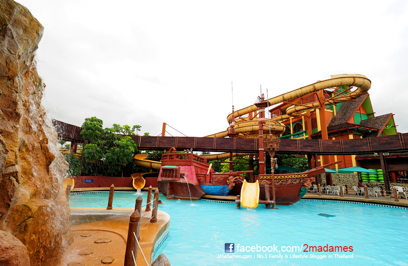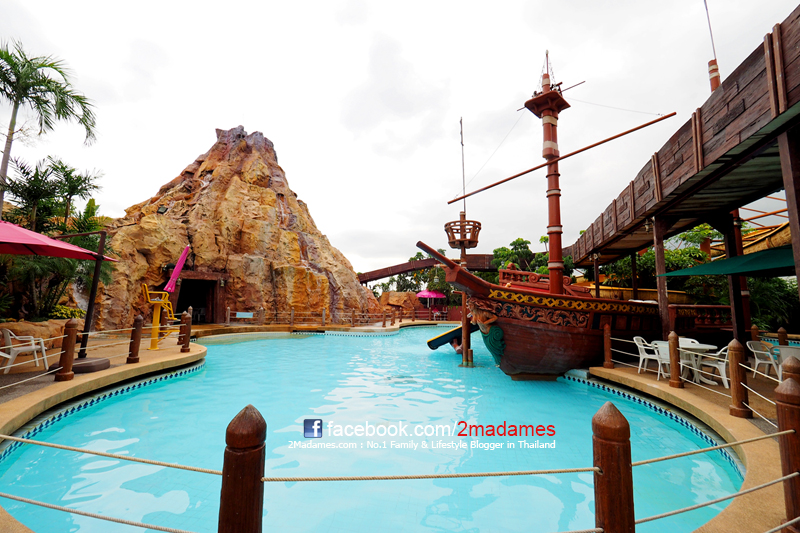 ตรงกลางสวนน้ำจะมีภูเขาไฟลูกใหญ่อยู่ ซึ่งมีปากประตูเป็นถ้ำโจรสลัดด้วย