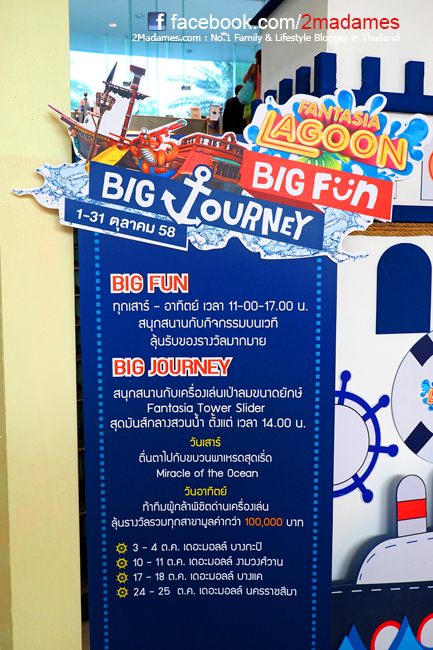 ช่วงนี้ (ต.ค.58) เค้ามีเทศกาล Big Fun Big Journey อยู่ครับ มีกิจกรรมมาให้ร่วมสนุกทุกเสาร์-อาทิตย์ แล้วก็มีเครื่องเล่นใหม่ Fantasia Tower Slider เป็นเครื่องเล่นเป่าลมมาให้เล่นด้วย ดูแล้วน่าจะสนุก ดูรายละเอียดได้ที่ป้ายเลย