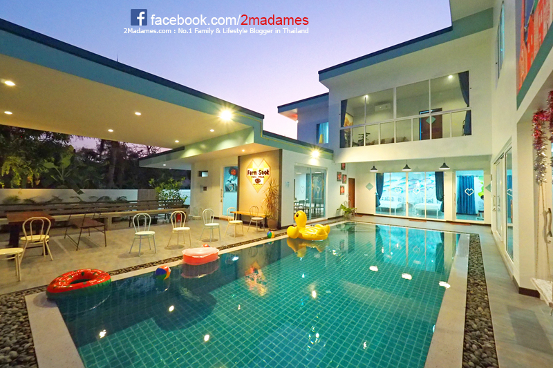 เวลาที่เราเดินทางไปพักผ่อนกับครอบครัวใหญ่หรือกลุ่มเพื่อนฝูงเนี่ย ถ้าไปพักห้องสี่เหลี่ยมตามโรงแรมเนี่ย มันจะขาดพื้นที่ทำกิจกรรมเฮฮาสังสรรค์ของทุกคนนะ จะไปรวมที่ห้องคนใดคนหนึ่งก็คงจะไม่สะดวกหรอก วันนี้ 2Madames มีที่พักสำหรับครอบครัวใหญ่มาแนะนำกันกับ Farm Sook Pool Villa Hua Hin-Cha am (ฟาร์มสุข พลูวิลล่า หัวหิน-ชะอำ) บ้านพักขนาด 15 คน 5 ห้องนอน 5 ห้องน้ำ พร้อมห้องนั่งเล่น ห้องครัว เตาบาร์บีคิว และสระว่ายน้ำส่วนตัวแบบ Pool Villa ในราคาเบาๆ หารแล้ว กำมาคนละพัน ยังมีทอนกลับไป มันจะดี มันจะคุ้ม และเหมาะกับการปาร์ตี้แค่ไหน ตามไปรับชมรีวิวกันจ้า