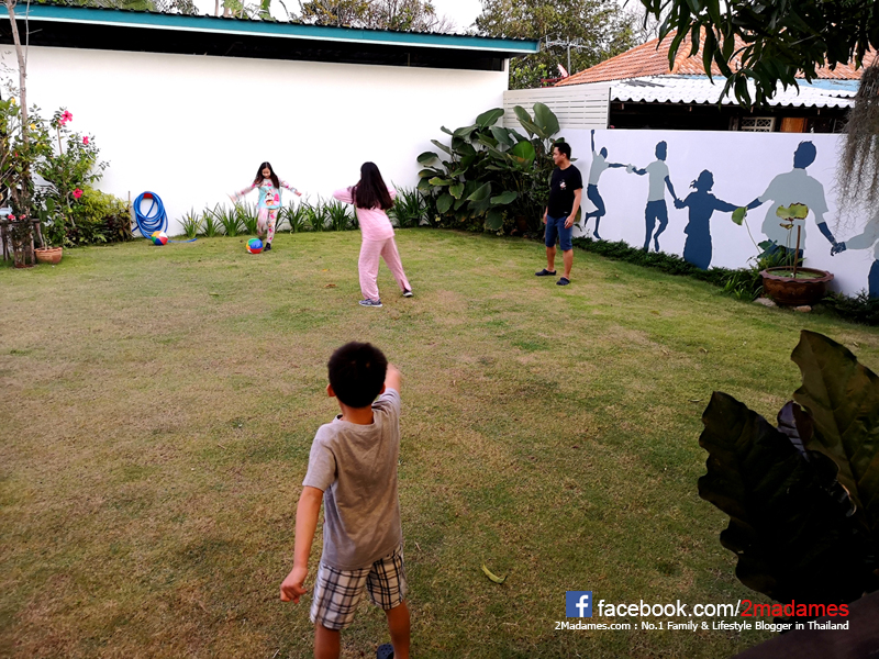 เล่นน้ำเสร็จ ยังมาเล่นยอลที่สนามหญ้ากันต่ออีก แหม พลังงานเยอะจริงเชียว