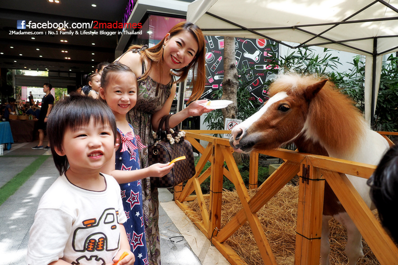 มาถึง K Village แล้วก็เดินมาตรงกลางห้างเลย งานจัดเต็มพื้นที่ อยู่ในร่มนะ ไม่ต้องกลัวเปียกฝน แวะทักทายเจ้าม้าแคระโพนี่กันก่อน ถ้าอยากให้อาหารโพนี่ก็มีแครอทจานละ 20 บาทขายอยู่ข้างๆครับ เด็กๆชอบกันใหญ่เลย