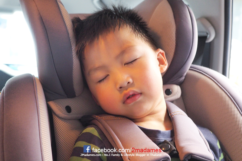 เพื่อให้เห็นภาพว่าถ้าเด็กเล็กนั่งจะสบายแค่ไหน เราเลยไปยืมตัวน้องภูผาลูกของน้องสาวของคุณนายแอนวัย 6 เดือนมาเป็นนายแบบหน่อย ในภาพคือเอนนอนระดับ 4 เลยนะ แหม สบายแบบ Business Class บนเครื่องบินเลยทีเดียว