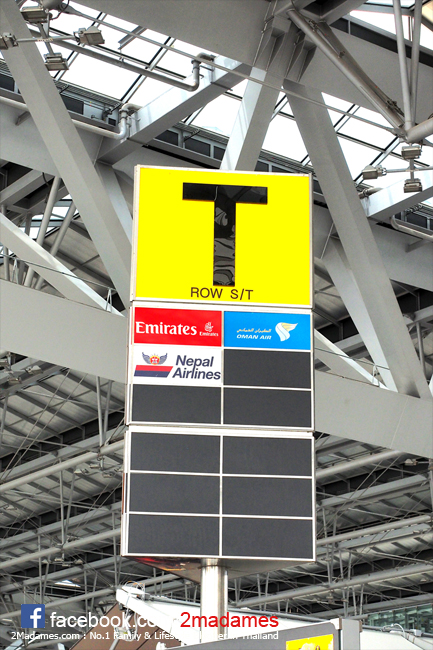 พวกเราเดินทางมาถึงท่าอากาศยานสุวรรณภูมิก่อนเวลาประมาณ 3 ชั่วโมง มาที่ Row T เพื่อ Check-in ที่เคาน์เตอร์