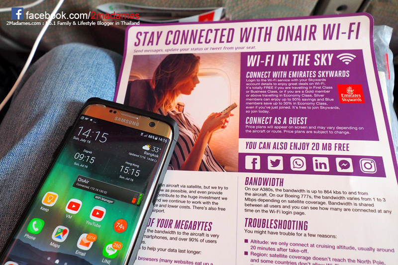 ระหว่างไฟล์ทบิน บนเครื่อง A380 ก็จะมี ONAIR WI-FI ให้ใช้ด้วย