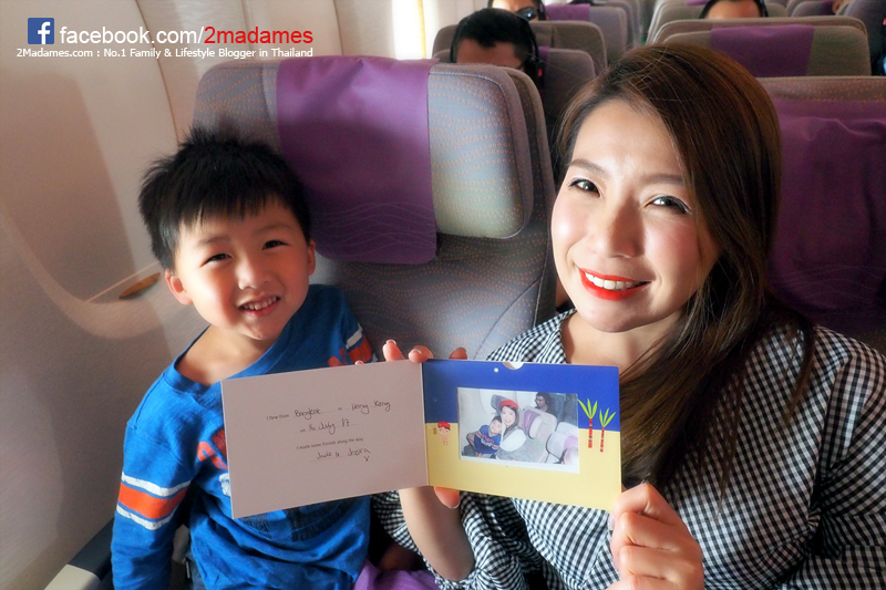 สักพักพี่นางฟ้าแอร์โฮสเตสก็เดินมาแจกของต่างๆให้กับน้องเกรซน้องกาย จะมีเป็นหูฟังเด็ก สมุดเกมส์พร้อมสี รวมทั้งผ้าห่มด้วยครับ