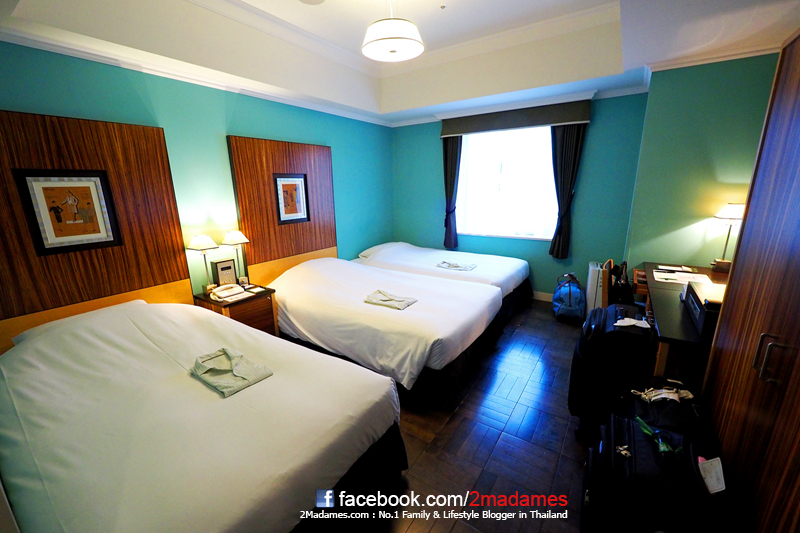 ผมจองห้อง Triple มีสามเตียง ขนาดของห้องเล็กตามแบบฉบับโรงแรมกลางเมือง แต่ก็สะอาดดีครับ