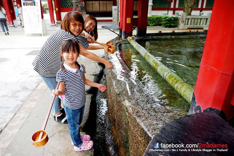 ตามประเพณีชาวญี่ปุ่นต้องล้างมือกันก่อนเข้าศาลเจ้านะครับ