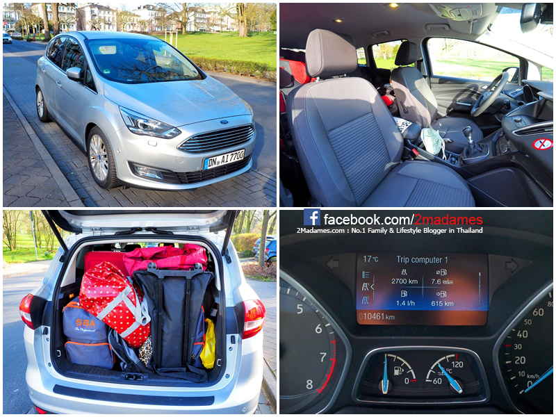 รถจาก Hertz เป็นรุ่น Ford C-Max นั่งได้ 5 เก้าอี้ ด้านหลังจุของได้เยอะมาก กระเป๋าใบใหญ่ๆหลายใบก็เอาอยู่ครับ สภาพรถใหม่มาก รถเพิ่งขับมาได้เจ็ดพันกว่าโล เรียกว่าผมค่อนข้างพอใจมากที่ได้รถใหม่แบบนี้ และเจ้า Ford คันนี้ก็ไม่มีปัญหากวนใจอะไรเลย ขับลื่นตลอดระยะทางกว่า 2,700 กิโลเมตรไปแบบไม่มีงอแงเลยแม้แต่น้อย