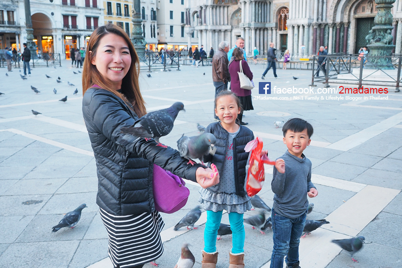 ตอนแรกจะนั่งเรือกอนโดล่ากัน แต่ราคามันแพงมาก เลยเปลี่ยนใจพาเด็กๆมาให้อาหารนกที่จัตุรัสเซนต์มาร์คแทน