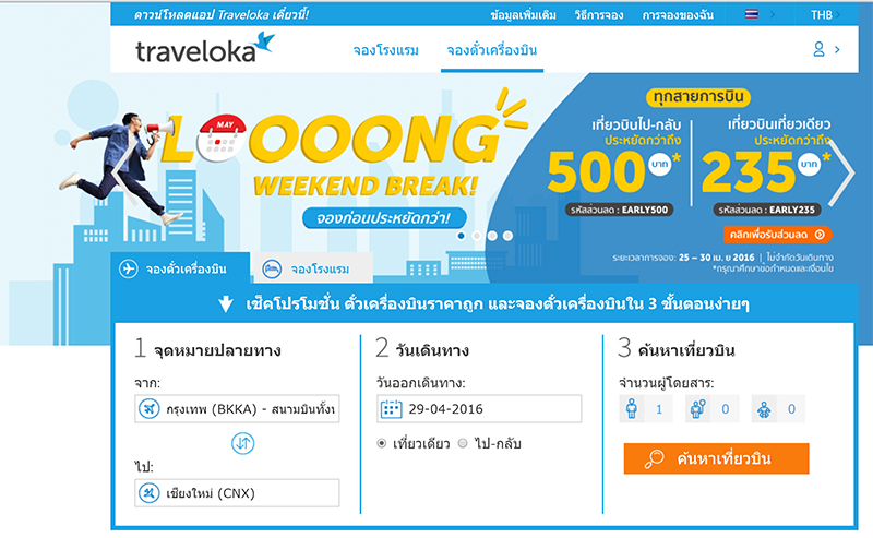 คือเว็บนี้ที่จริงเป็นเว็บจองตั๋วเครื่องบินที่ใหญ่เป็นอันดับต้นๆของ South East Asia เวลาเราค้นหาเที่ยวบินก็จะแสดงเปรียบเทียบเวลาและราคาจากทุกสายการบินเลย เราก็สะดวกเพราะไม่ต้องไปนั่งเช็คทีละสายการบิน กดเช็คราคาที่ Traveloka ที่เดียวจบ ประหยัดเวลาและได้ราคาถูกสุด แถมชอบมีโปรลดราคาค่าตั๋วเพิ่มอีกมาแจกอยู่เรื่อย เช่น ลด 500 บาทบ้าง แค่ใส่โค้ดที่เค้าแจ้งมาที่หน้าแรก ใช้แล้วดีมาก แนะนำ Traveloka ในการจองตั๋วเครื่องบินเลยครับ ดีงาม