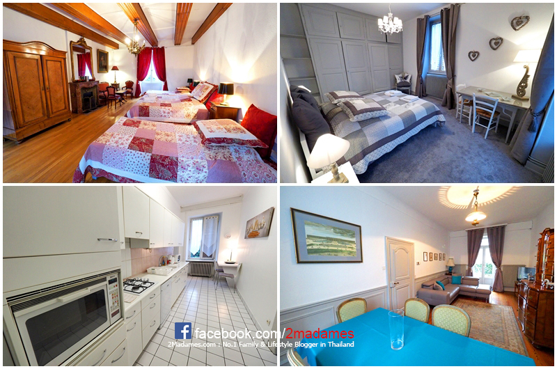 ที่พักของครอบครัวเราที่เมือง Colmar ดีงามมาก เป็นอพาร์ทเม้นท์ 115 ตร.ม. กว้างมากๆ แถมตกแต่งสวยงาม มี 2 ห้องนอน มีเตียงใหญ่ 2 เตียง เตียงเล็ก 2 เตียง นอนกัน 6 คนยังหลวมๆ มีห้องนั่งเล่น โต๊ะทานอาหาร และครัวอุปกรณ์ครบกว่าที่บ้านผมอีกครับ มีระเบียงกว้างมีสวนสวยงาม มีที่จอดรถฟรี อยู่กลางใจเมืองใกล้กับที่ท่องเที่ยวแบบเดินไปถึงไม่กี่นาทีเอง ราคาก็ไม่แพงเลย แค่หกพันบาทต้นๆ เรียกว่าเช็คราคาโรงแรมรูหนูที่ฝรั่งเศสบางที่ยังแพงกว่าที่นี่เลย